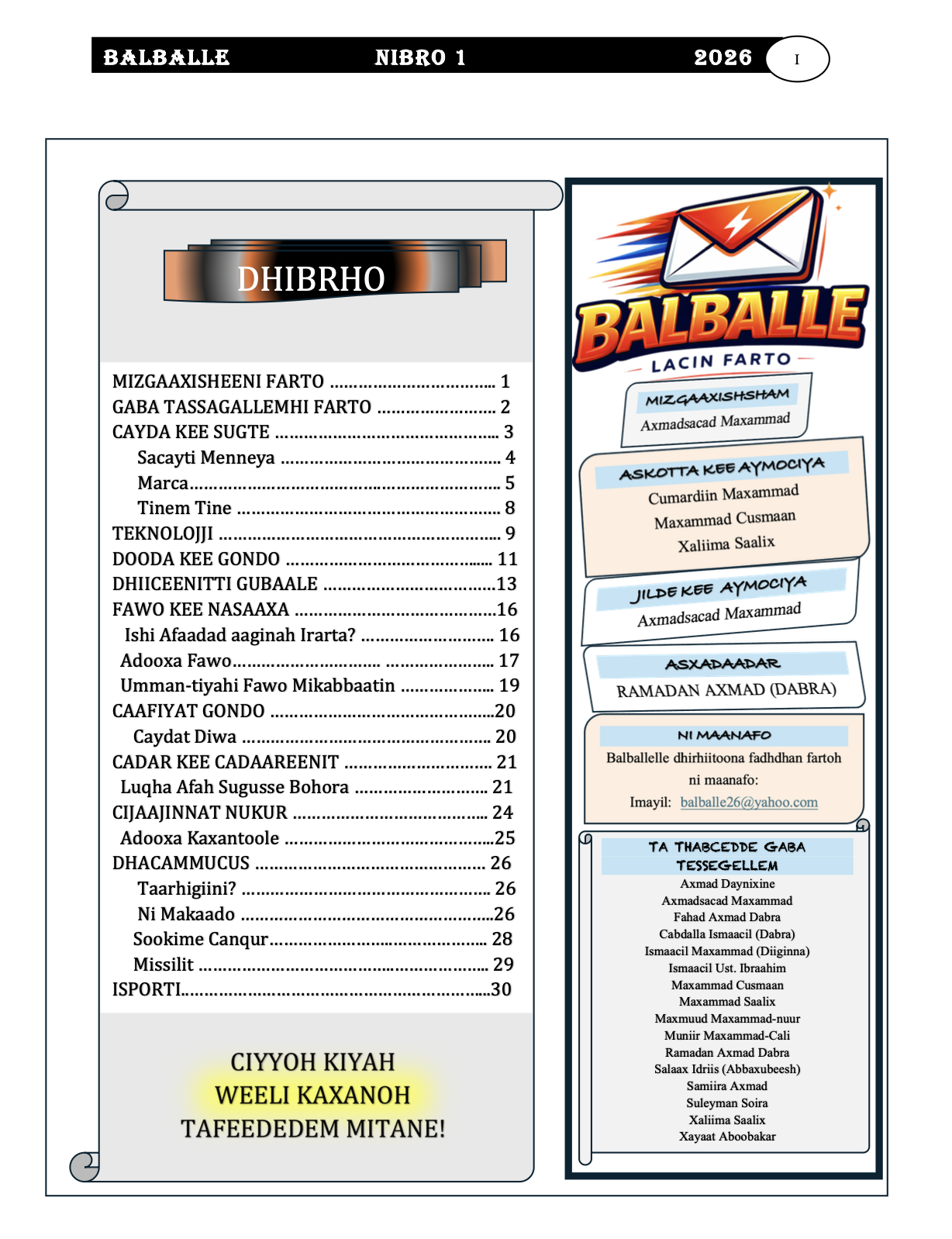 Maacil kee Sariigalla, Balballe ni Majallah!